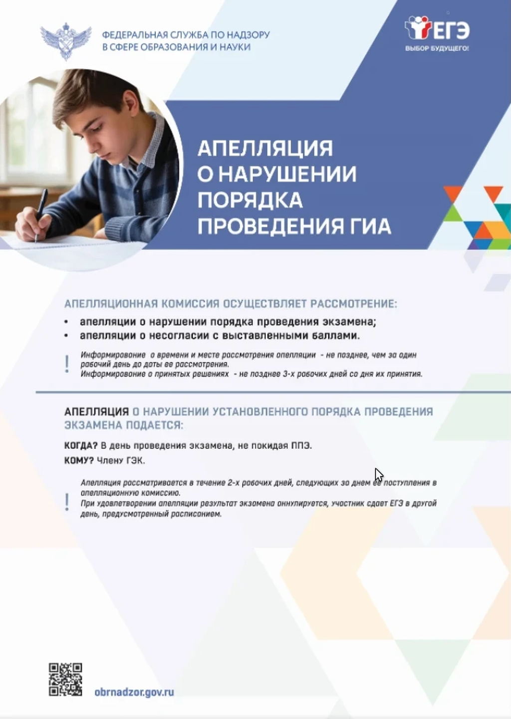 О сроках, местах и порядке подачи и рассмотрения апелляций (Приказ Минпросвещения России N 233, Рособрнадзора N 552 от 04.04.2023 (ред. от 12.04.2024) "Об утверждении Порядка проведения государственной итоговой аттестации по образовательным программам среднего общего образования".(пункт № IX.Приём и рассмотрение апелляций)